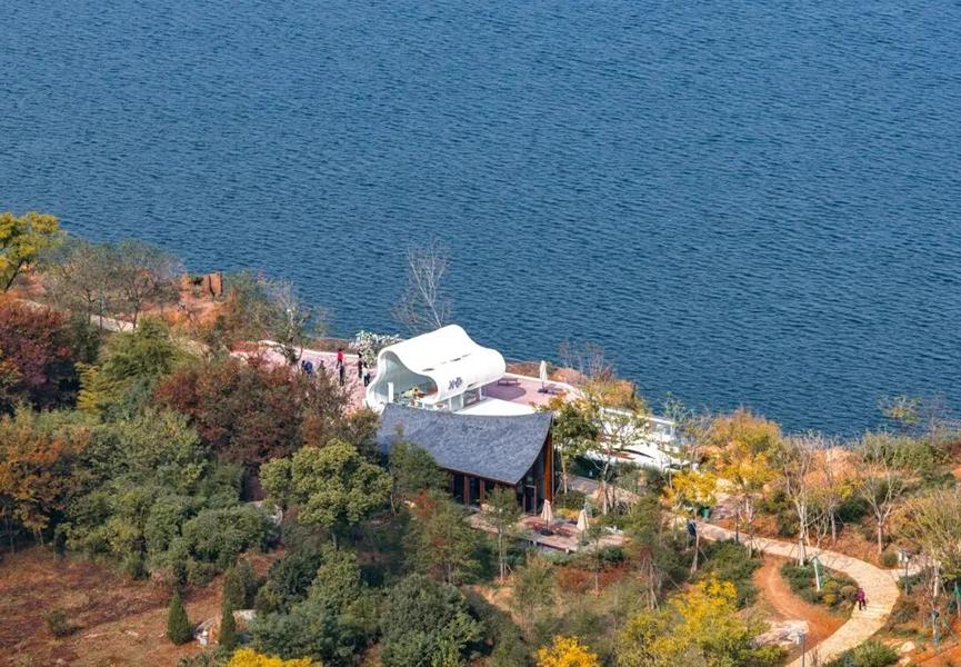 江西横峰红枫公园,山谷景观独特,山峦起伏、溪流潺潺,红枫满山,景色优美,是秋季观赏红叶的绝佳地点。