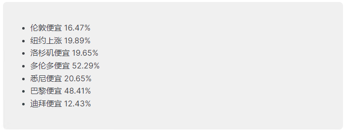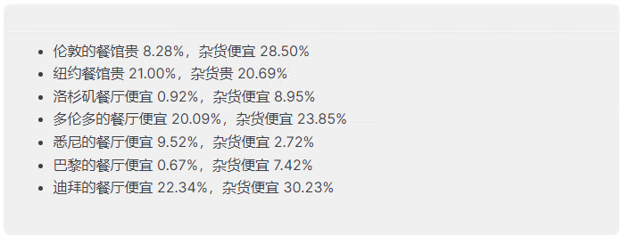 同样,无论您是外出还是在家用餐,都要准备好比在大多数其他地方花费更多的钱。这就是餐厅和食品价格与世界其他主要城市的比较。