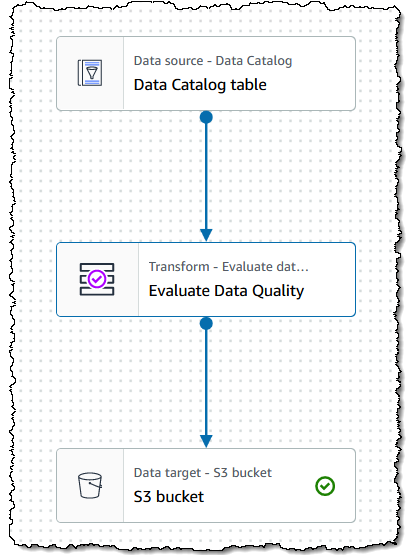 除了创建附加到表的规则集外,我还可以将它们用作 Glue 作业的一部分。我像往常一样创建我的工作,然后添加一个评估数据质量节点: