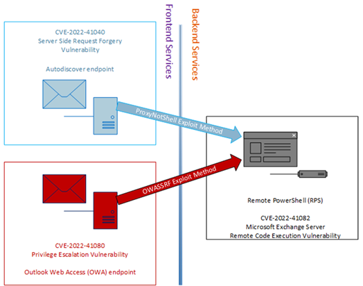 值得注意的是,CVE-2022-41040 和 CVE-2022-41080 都源于服务器端请求伪造 ( SSRF ),它允许攻击者访问未经授权的内部资源,在本例中为PowerShell 远程服务。