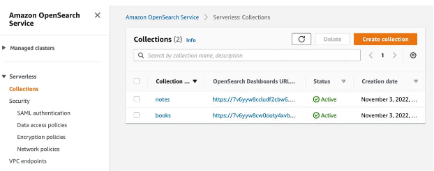 在启动 OpenSearch Serverless 之前,您创建了一个托管集群,指定了实例类型、计数和存储选项,然后管理该集群内索引的生命周期和分片策略。使用 OpenSearch Serverless,您可以创建一个 Collection,它管理一组协同工作以支持特定工作负载的索引。您不再需要指定硬件或直接管理索引。