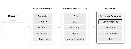 默认情况下,Edge Functions 在最接近请求的区域中运行,以获得尽可能低的延迟。此外,这些函数在缓存之后运行,因此可以缓存和返回响应。Next.js 和许多其他框架(如Nuxt、Astro和SvelteKit)本身就支持 Edge Functions。然而,开发人员也可以使用Vercel CLI创建一个独立的函数。