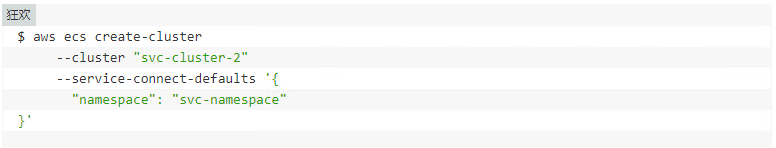 或者,您可以通过 AWS 命令??行界面 (AWS CLI) 使用service-connect-default参数和用于服务发现的默认 Cloud Map 命名空间名称简单地创建一个集群。