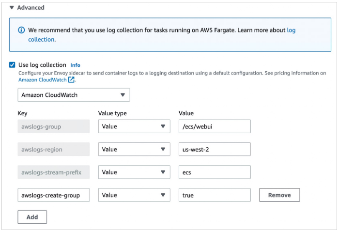 ECS 服务连接支持 HTTP/1、HTTP/2、gRPC 和 TCP 协议。因此,您可以收集请求数、HTTP 错误数和平均调用延迟。对于 gRPC 和 TCP,您可以看到活动连接总数。所有这些指标都通过自定义日志路由推送到Amazon CloudWatch或其他 AWS 分析服务