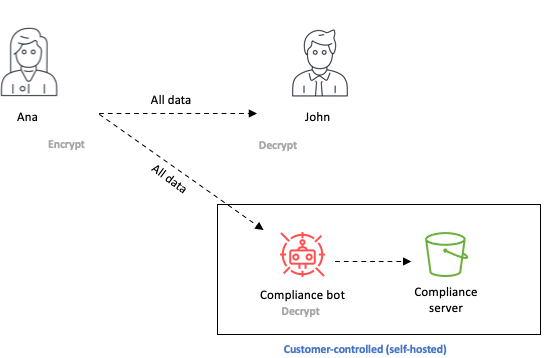 数据保留过程可作为Docker 容器使用,以便于部署。该过程将明文消息存储在您选择的存储上:本地或远程文件系统或Amazon Simple Storage Service (Amazon S3)。