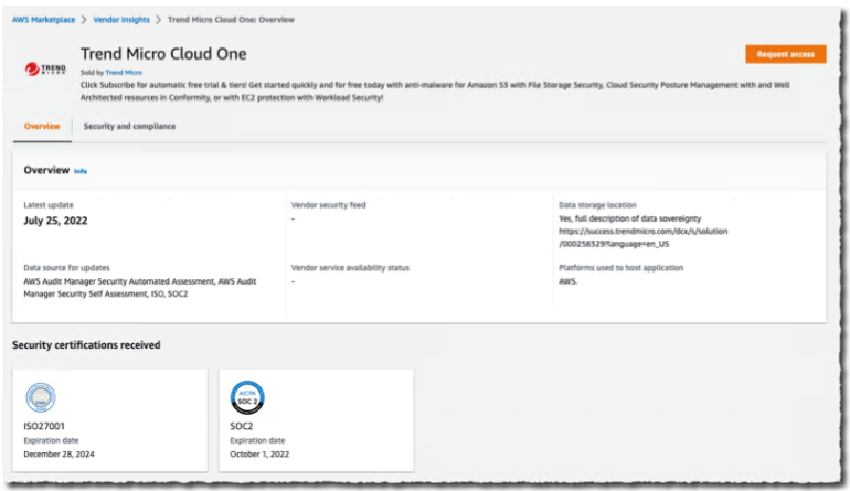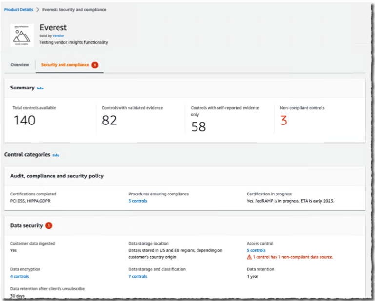 AWS Marketplace Vendor Insights是 AWS Marketplace 的一项新功能。从 AWS Marketplace 采购解决方案时,它简化了第三方软件风险评估。