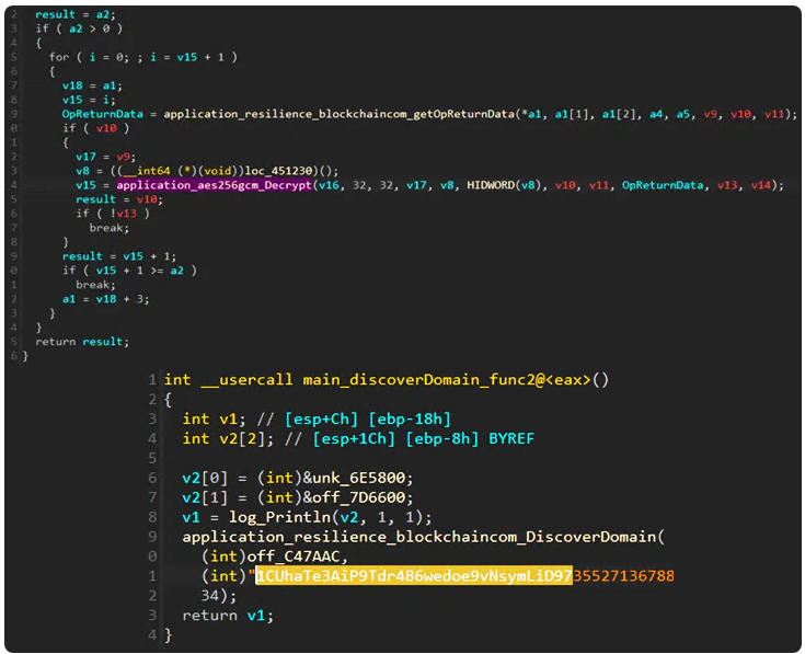 具体来说,僵尸网络旨在搜索公共比特币区块链以查找与威胁行为者拥有的钱包地址相关的交易,从而获取加密的 C2 服务器地址。