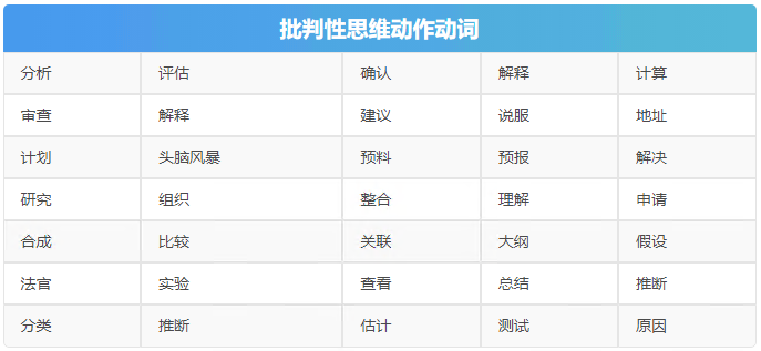 此外,您应该使用与批判性思维技能相关的简历动作动词。以下是强调您批判性思考能力的动作动词示例: