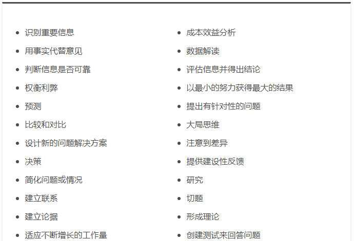 雇主看重能够运用强大的批判性思维能力来帮助的候选人:
