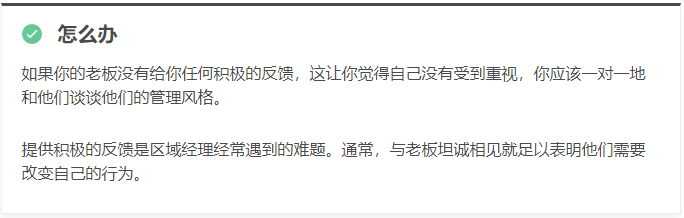 每一天,您都将最大的努力投入到您的工作中。你得到结果。但无论如何,你都得不到积极的反馈、表扬或职业发展的机会。您从老板那里得到的唯一反馈是出现问题时。