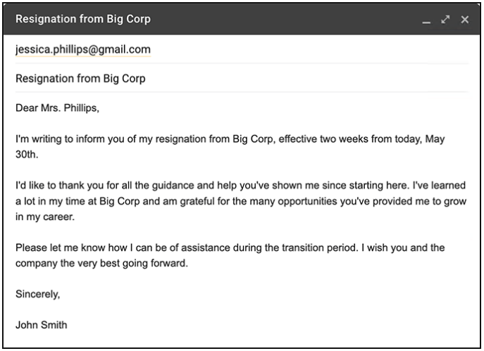 提供至少两周通知的辞职信(或电子邮件)