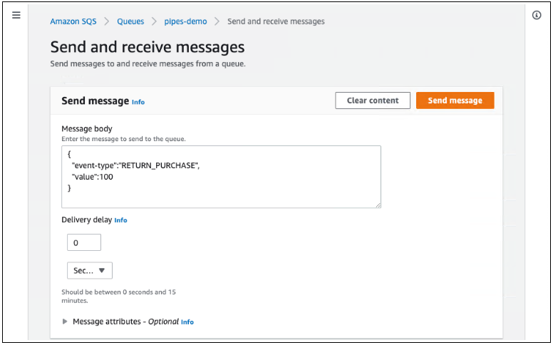 要测试此管道,我需要将一个事件放入 Amaon SQS 队列中。