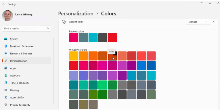 选择颜色为您的背景选择强调色。或者单击“自定义颜色”来调配您自己的颜色以用作强调色。您还可以选择为您的颜色提供透明效果,在“开始”菜单和任务栏上显示强调色,并选择浅色或深色模式。
