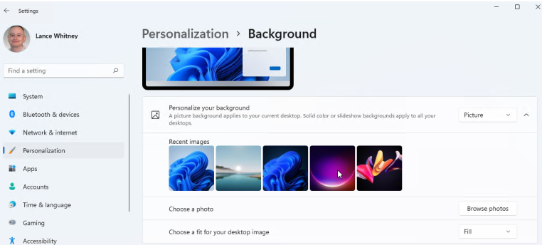 通过选择任何一个元素来编辑您当前的主题。例如,单击“背景”选项并为您的桌面选择一个新的背景图像。