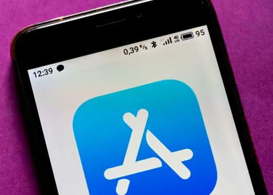 智能手机上显示的 App Store 徽标。