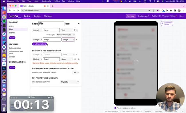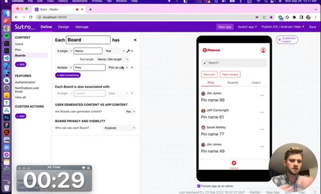 该公司有一个演示,他们在大约 60 秒内构建了 Pinterest 的基本版本(见下文)。