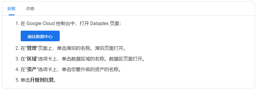 您可以在 Google Cloud 控制台中或通过发布 Dataplex API 方法 Patch来升级 Cloud Storage 存储桶资产。