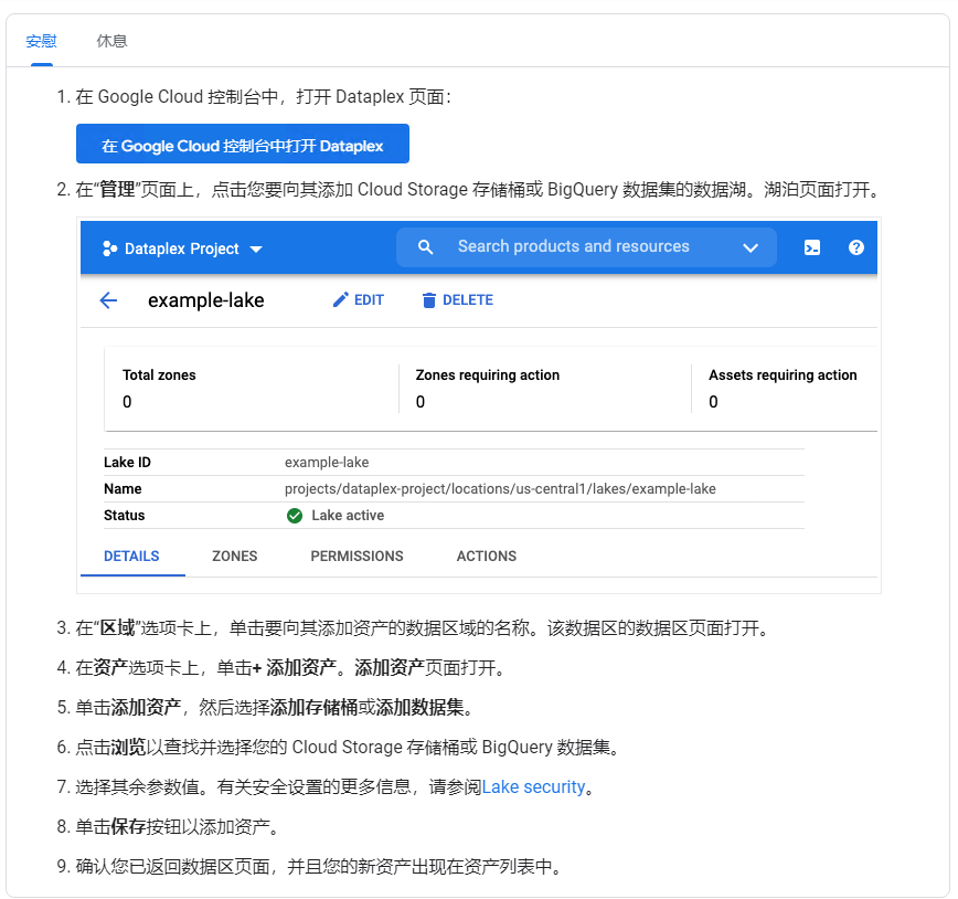 注意:附加资产不能由另一个数据区或数据湖管理。在你开始之前,如果您还没有,请在该湖中创建一个湖和一个 区域。