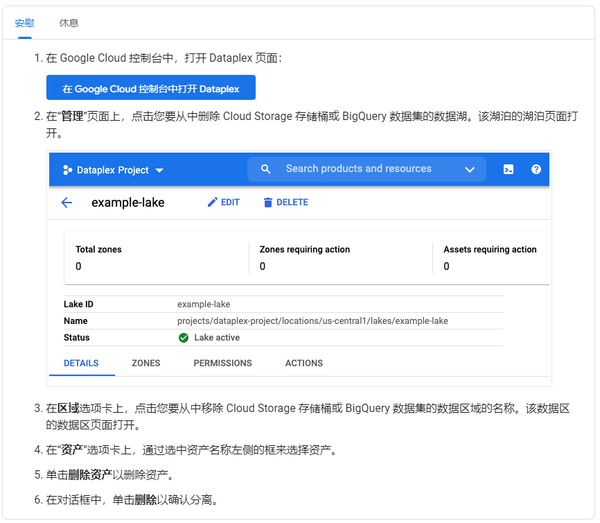 您可以在 Google Cloud 控制台中或通过发出 Dataplex API 方法来删??除 Cloud Storage 存储桶或 BigQuery 数据集资产lakes.zones.assets.delete。在将资产附加到其他数据区或湖之前,先将其从数据区或湖中移除。
