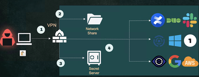 几个月前发生的针对 Uber 的著名攻击包含大量妥协和服务帐户的使用。在那种情况下,它是一个可以访问 PAM 的服务帐户。攻击者在共享网络驱动器中找到了带有服务帐户凭据的脚本,并利用它从 PAM 的保险库中提取多个资源的密码。