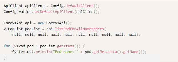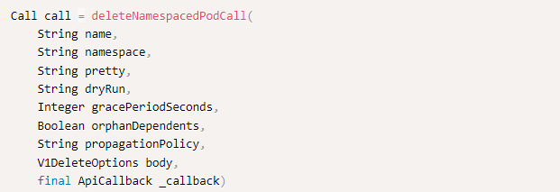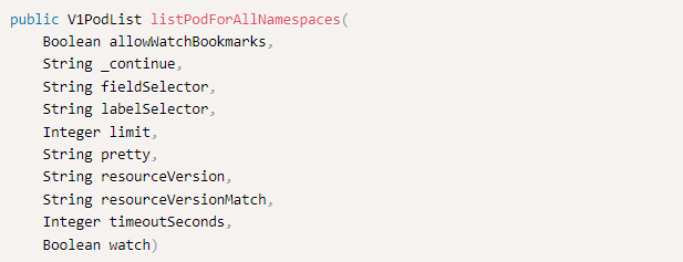 该listPodForAllNamespaces()方法通过指定方法的参数提供了许多配置选项: