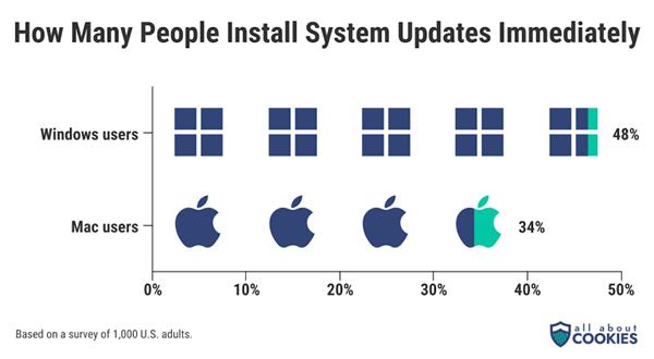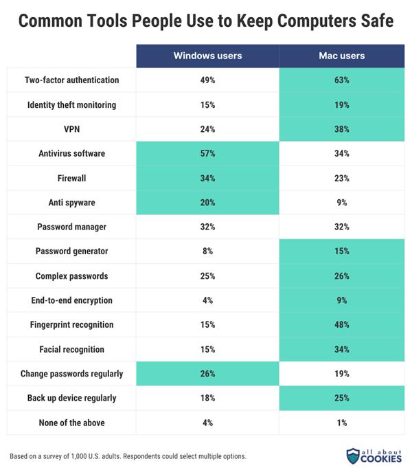 越来越多的 Mac 用户接受了多重身份验证、ID 防盗保护、密码生成器、VPN和生物识别技术。然而,Windows 用户更有可能尽快安装系统更新。