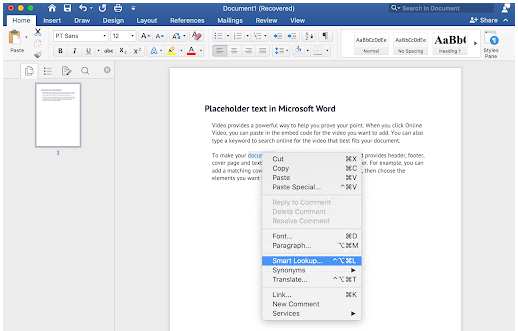 通过选择一个词并右键单击它,您可以使用一个名为Smart Lookup的工具。
