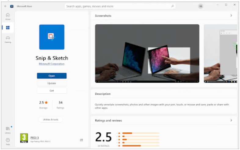 在开始之前,请确保您的计算机上安装了最新版本的 Snip and Sketch。您可以通过打开 Microsoft Store 并检查更新来执行此操作。