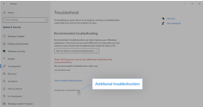 可选:如果您不与 Microsoft 共享完整的诊断数据,请单击其他疑难解答链接并在此处找到网络适配器疑难解答。