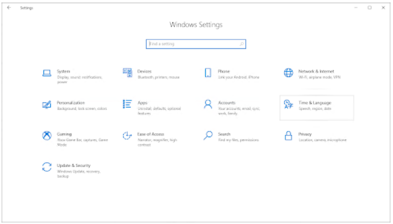 应打开一个新窗口。在这里,选择时间和语言选项卡。