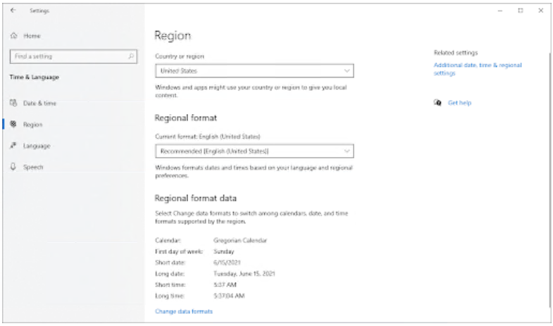 接下来,切换到“区域”选项卡。在Country or region下,选择您当前所在的国家或州。请注意,您需要连接到 Internet 才能进行更改。