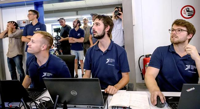 Davide Scaramuzza(最左)、Elia Kaufmann(最右)和苏黎世大学的其他机器人专家观看了一场势均力敌的比赛