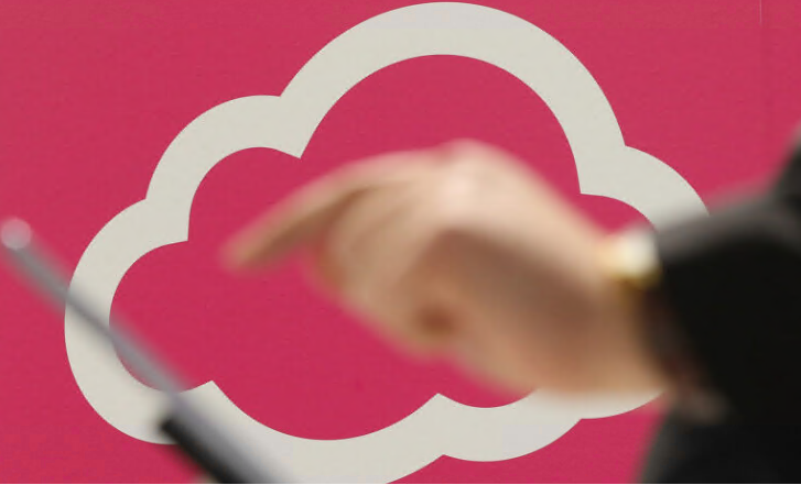 在技??术交易会上,一位参观者在云计算和技术标志旁边试用平板电脑。Snyk Cloud 现在提供对 SBOM 的支持以及新的报告和自助服务功能。(照片由肖恩盖洛普/盖蒂图片社拍摄)