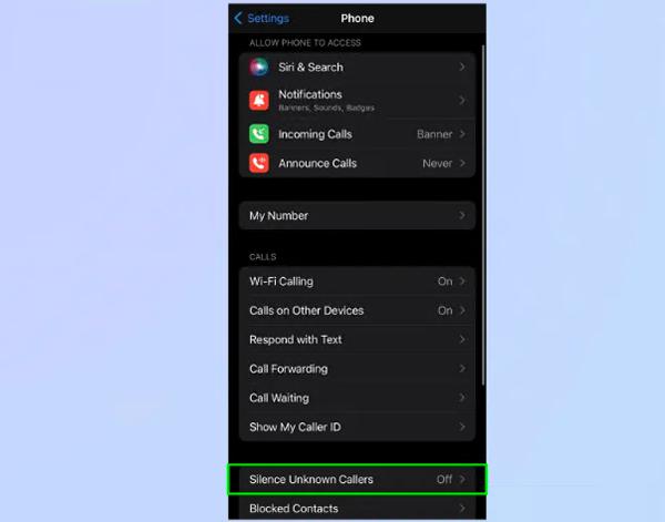 显示如何在 iPhone 上阻止未知来电的屏幕截图