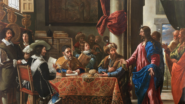 普林斯希望出现的一幅画是一件非常小的东西——一种不到两英尺宽的铜质油画,上面有一个较小版本的“圣马太的呼唤”,大约在 1661 年左右完成。