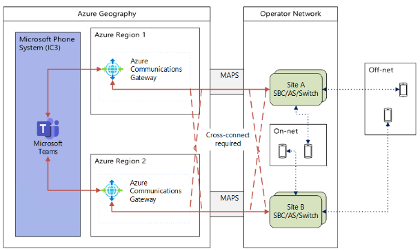 根据Azure文档,通信网关通过将其部署到给定地理范围内的两个 Azure 区域来确保可用性。此外,它还支持双活和主备地理冗余模型,以适应客户的网络设计。此外,客户的网络必须遵循 Microsoft Teams 网络连接规范并使用 Azure Peering Service。最后,站点还必须能够路由到两个 Azure 区域。