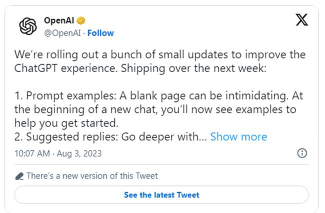 OpenAI 今天宣布进行更新,使其聊天机器人更加用户友好。打开一个空白的 GPT 窗口可能会让人望而生畏,因此现在用户会收到建议的提示,以激发想法并让创意源源不断。