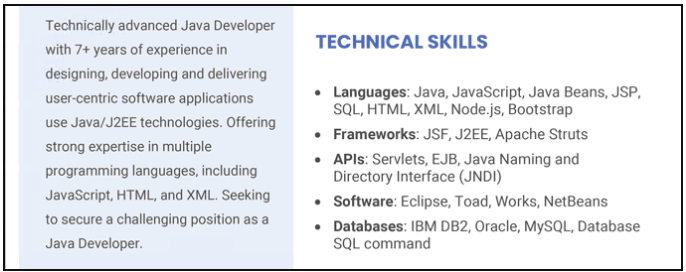 但是,如果您拥有大量技术技能,最好使用技术技能部分将每项技能组织到一个通用类别中。