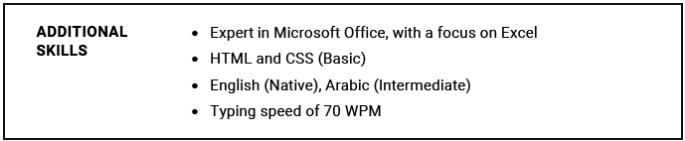 如果您兼具硬技能和软技能,并且没有高级技术专长,只需将您的部分命名为“技能”或“其他技能”,并使用项目符号列出您的技能。