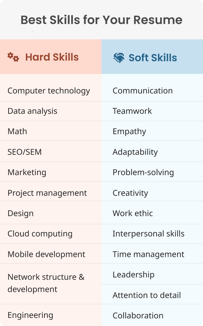 在开始撰写简历之前,请熟悉与您想要的工作相关的硬技能和软技能。