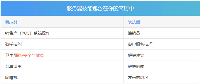 将这些技能中的一些添加到您的服务器简历中,以表明您非常擅长照顾客户和保持订单: