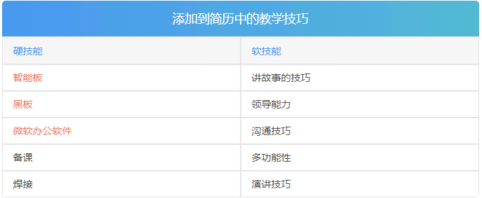在您的教师简历中包含这些技能,以表明您有能力教授人们新技能和信息: