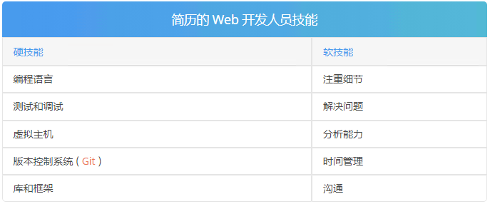 如果你申请的是技术或工程方面的工作,这是最适用的,因为它使你的技能部分更易于阅读,并允许你突出显示各种软件和编码语言。
