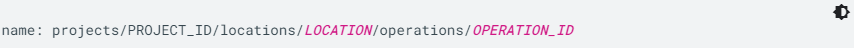 该命令会返回有关长时间运行的操作的信息,包括操作 ID: