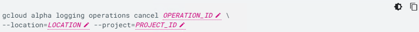 您可以使用 gcloud alpha logging operations 命令查看和管理复制操作,以便列出、查看和取消操作。