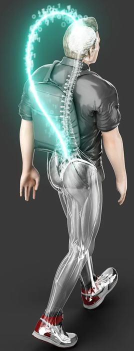 Courtine 的研究以脑脊柱接口 (brain-spine interface, BSI) 的形式提出了这个问题的解决方案。BSI 分两步进行。首先,脑机接口通过放置在 Oskam 大脑表面的电极测量神经活动。与腿部控制相关的大脑活动,由经过训练以识别它的机器学习模型解码,然后用于控制植入 Oskam 脊柱的一组单独的电极。这种脊髓刺激器激活驱动自然步行运动的神经元组。换句话说,BSI 弥合了 Oskam 神经系统因受伤而造成的沟通障碍,使他恢复了行走的能力。有了新系统,他现在一天可以走 200 多米,并且可以在不借助助行器的情况下站立 3 分钟。