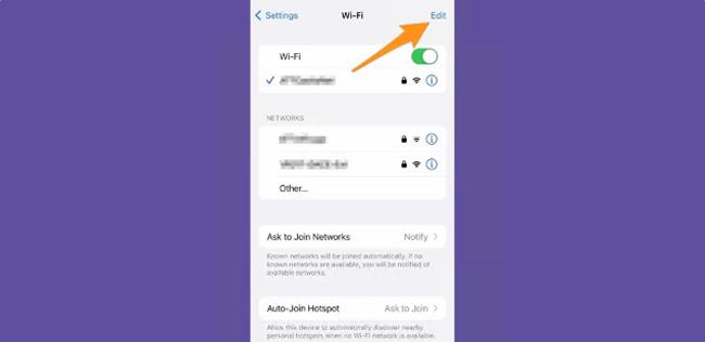 您的 WiFi 名称应该出现在您的设置中。单击右上角的编辑。