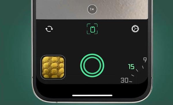绿色背景的 iPhone,显示 Spectre 应用程序中的长曝光控件