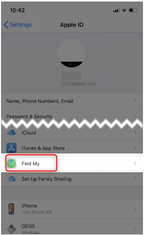 点击查找我的部分。这会将您带到屏幕,您可以在其中看到与“查找我的 iPhone”等功能相关的所有选项的列表。