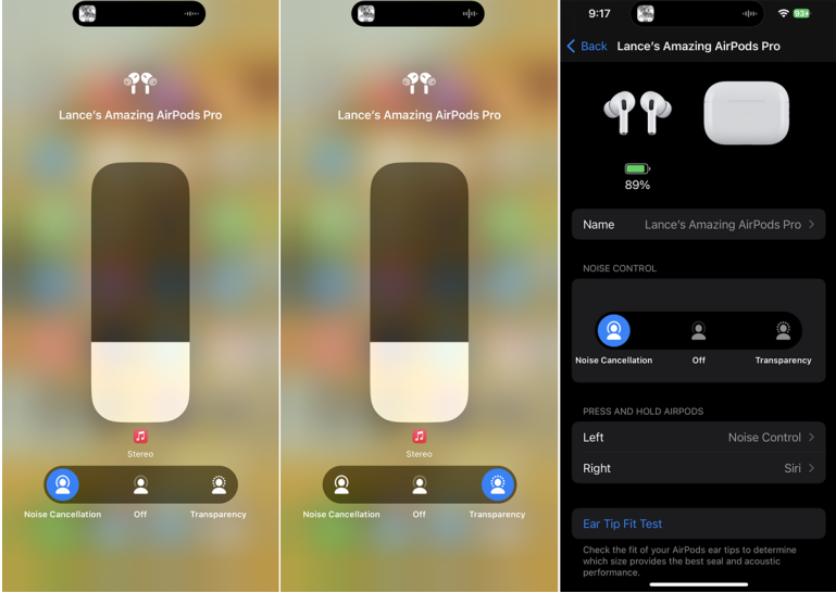 AirPods Pro提供两种不同的聆听模式,可以帮助抑制背景噪音。降噪功能几乎可以屏蔽所有背景声音,因此此功能在您希望能够清晰听到音频的嘈杂环境中会派上用场。